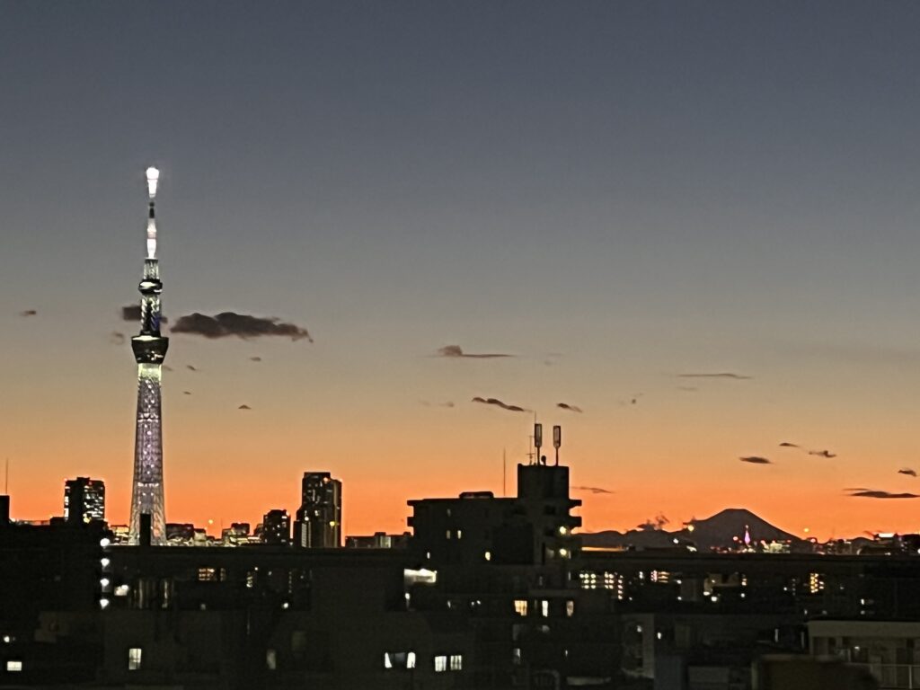 夕焼けもきれいに見えました。右下には富士山も😊