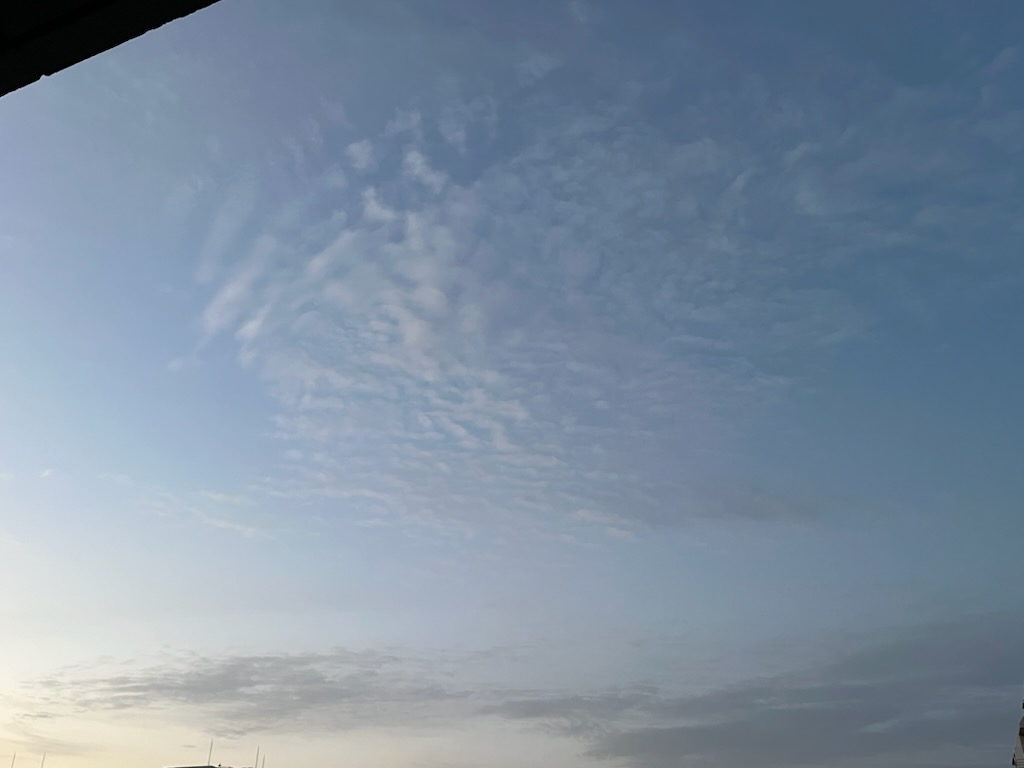 朝5時の空は明るくなっていて、雲の模様がきれいでした。