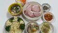 おかず作り🍳は、右手前の長崎ちゃんぽん風鍋。鶏がらスープの素、オイスターソース、塩、最後に豆乳を入れました。かまぼこ・・・は強風のため外出を諦めて、冷凍庫に残っていたあさりを消費。冷蔵庫の作り置きを合わせて、私のご飯はこのようになりました。
