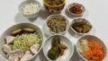 豚こま切れ肉と野菜を炒めて、粒マスタードソースで味付け。冷蔵庫に残っている鶏ゆで汁と、レトルトカレーを使ってカレー鍋。