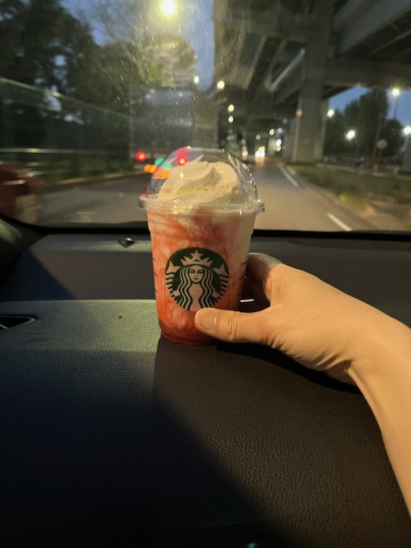 昨日の夕方、娘から誘われてドライブへ🚙 葛西スタバのドライブスルーで、思い切って初フラペチーノ🎉 テンション爆上がりで、これだけで「いい日だった~♪」と思うほど😆