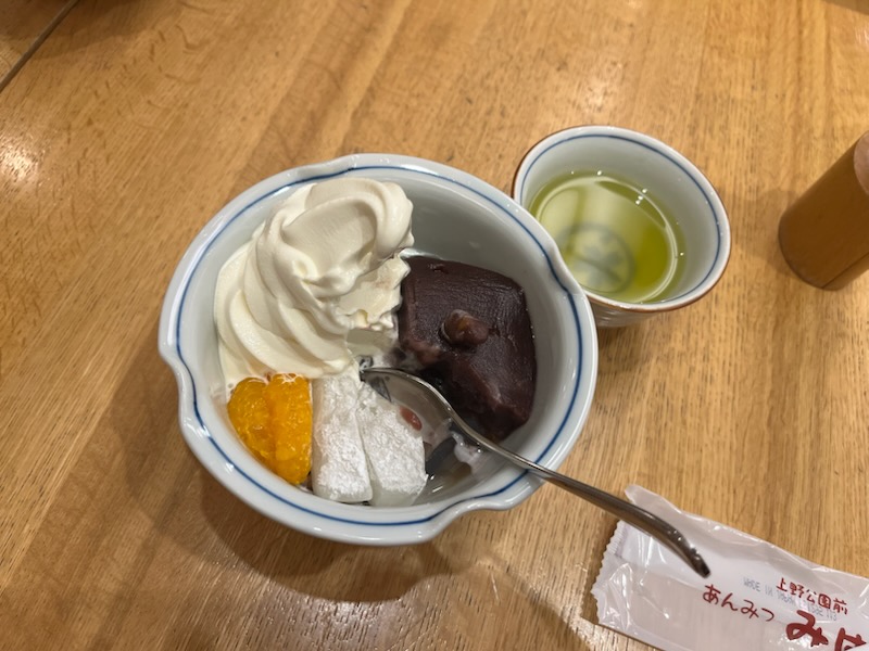 少しお散歩して、みはしでクリームあんみつ🥰 写真を撮る習慣がないので、一口食べてから慌てて📷