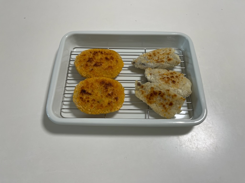 今日はおかず作り🍳はお休みのはずが、冷凍ストックのおかずが「豚肉のチーズ焼き」しかなく💦冷凍アジフライとコロッケを揚げ焼きしました。やっぱり冷凍ストックおかずは大事!明日作ろう😊
