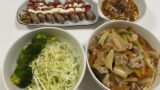 冷蔵庫整理でおかず作り🍳はお休み。作り置き+レトルトハンバーグで、私のご飯はこのようになりました。