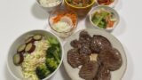 旦那が勤務先でブロックのハムやソーセージを買ってきて、これからしばらく食卓に並びます😓 冷蔵庫の作り置きを合わせて、私のご飯はこのようになりました。